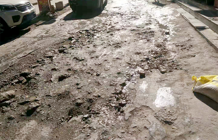 該項(xiàng)目為原有道路改造工程,道寬約7.0米,行人和車流量大,而道路排水系統(tǒng)不完善,雨污水合流排放,長(zhǎng)期沖刷導(dǎo)致該路段路面破損較嚴(yán)重,坑塘較多,積水嚴(yán)重,影響行人出行和道路美觀,項(xiàng)目部從2019年11月21日起對(duì)此道路進(jìn)行提升改造。