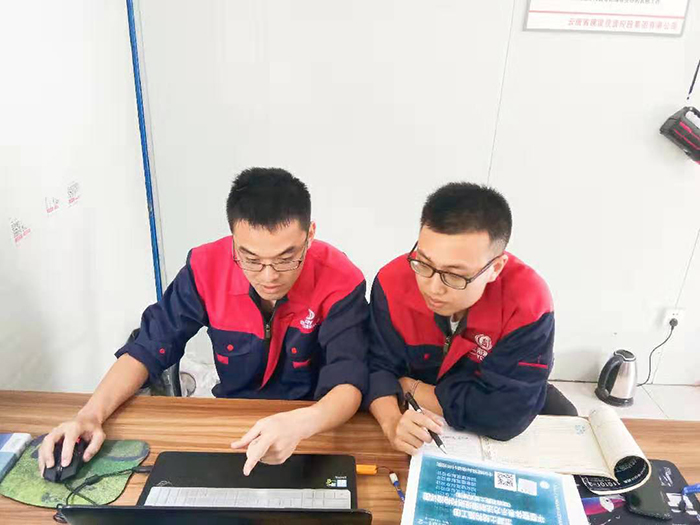 回憶起師徒倆第一次見面,恰好是袁野到工地報(bào)道的那天,他背著一個(gè)大包,拖著半人高的行李箱,從昆明輾轉(zhuǎn)到鎮(zhèn)雄,一路上風(fēng)塵仆仆,十分疲憊??粗菔菪⌒⊥现欣钕涞纳碛?,張銳對(duì)他印象很深,“工地上哪里經(jīng)得起這么折騰,向來都是輕裝簡(jiǎn)行”,張銳事后經(jīng)常拿這件事調(diào)侃他,雖是玩笑話,但其實(shí)也藏著他對(duì)徒弟的關(guān)心與心疼。
