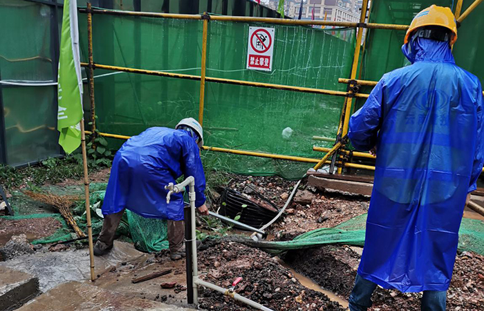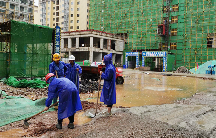 現(xiàn)場因?yàn)橄麓笥辏┕と藛T還沒有到,項(xiàng)目經(jīng)理帶頭走在前面跟他們交待著,隨后只見我們的項(xiàng)目副經(jīng)理小全子拿起鋤頭就在一座集水井前開始挖,他們從旁邊挖出一個(gè)小溝,把水引流到集水井里面。雨越下越大,打著傘的我,鞋子、褲子都濕了,但我們的項(xiàng)目施工管理人員并沒有去安全通道躲雨,而是繼續(xù)往前走,看哪里積水多,就在哪里挖引流溝,我問他們:“這么大的雨,等下雨停了再來挖嘛,這樣等下都搞生病了”,他們笑著回復(fù)我:“如果再不挖,等下雨下大了,水越積越多,流到施工電梯基坑里面就麻煩了,雨太大了,你來這干嘛,趕緊回去”,這席話聽了暖暖的。