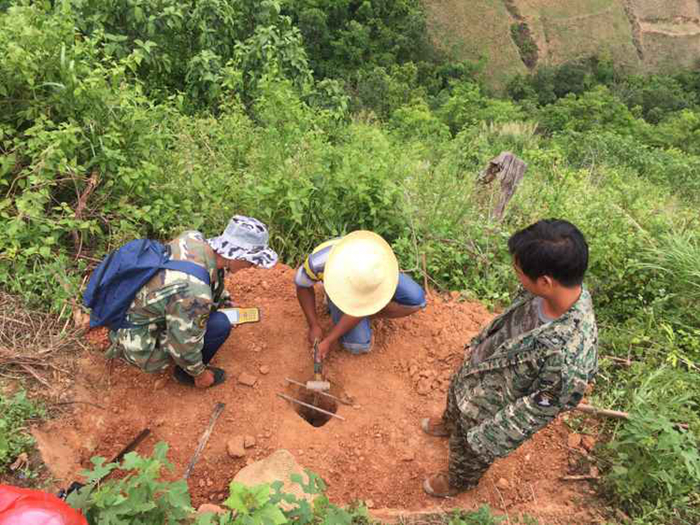 前往各導線點的路,看似能夠基本通行,但大家的艱辛之味卻未減半分。項目部所在地雖臨近戛灑江,可山中卻鮮有降雨、極度缺水,附近僅有的一兩座小村莊,也需駕車一兩個小時才能到達,然而小村莊里也并沒有充足的飲用水供應。項目部的管理員們想吃上一頓熱騰騰的飯菜都非常困難。他們每天上午8點準時出發(fā),最早也要到晚上8點以后才能回到項目部安排的臨時住所。幾瓶礦泉水和幾塊面包就是大家在出發(fā)后12小時內的全部食物。這里氣溫較高,入夏的溫度曾高達43℃。在走完四、五個小時的山路后,大家的身體都極度疲乏,又值正午烈日灼烤,很難有胃口吃下那些甜膩的面包“在家大魚大肉不想吃,現在哪怕是能有一口咸菜炒飯,我都會很滿足。”雖然只是一句玩笑話,但包含的苦累只有他們自己才能體會。在這里,一勺熱飯,一口熱茶,都成為了遙不可及的奢想。有時候,因所帶的儀器設備較重,為節(jié)省體力、減輕負重,在爬山前,他們會在山下把帶來的水喝掉幾瓶,從而減輕那僅僅500克一瓶水的重量。