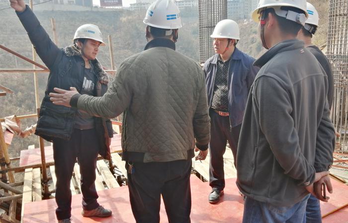在驗收過程中,陳芝軒帶領項目部驗收小組通過對鋼管扣件等原材料及支架搭設各項參數進行現場檢查測量、聽取施工工藝及質量控制措施匯報、核查拱架預壓專項施工方案等方式對該關鍵節(jié)點工程進行了檢查,同時提出了對支架的優(yōu)化措施及要求,最終形成驗收意見,同意拱架預壓平臺支架驗收通過,為項目部景觀橋預壓打下基礎。
