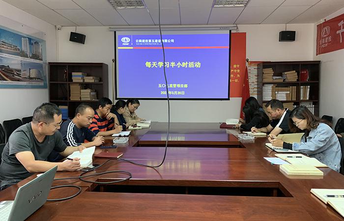為認真落實“黨史學習教育”的主題活動,學習好、宣傳好、開展好黨史學習教育,深入宣傳云南省委、集團黨委和公司黨委有關(guān)部署要求,五〇七直管部組織開展“每天集中學習半小時”活動。從5月26日起至今,全體職工每周一至周五早8:30至9:00進行集體學習。直管部為每一位黨員發(fā)放“每日學習半小時”學習日志,全體黨員以每日自學和支部集中學習相結(jié)合的方式,在黨員隊伍中掀起黨史學習的熱潮。
