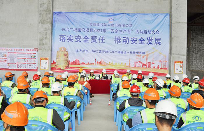 6月11日上午,興冶廣場建設(shè)項(xiàng)目一標(biāo)段現(xiàn)場,伴隨著“落實(shí)安全責(zé)任,推動(dòng)安全發(fā)展……”的洪亮宣誓聲,五〇五直管項(xiàng)目部2021年安全生產(chǎn)月活動(dòng)正式開始。