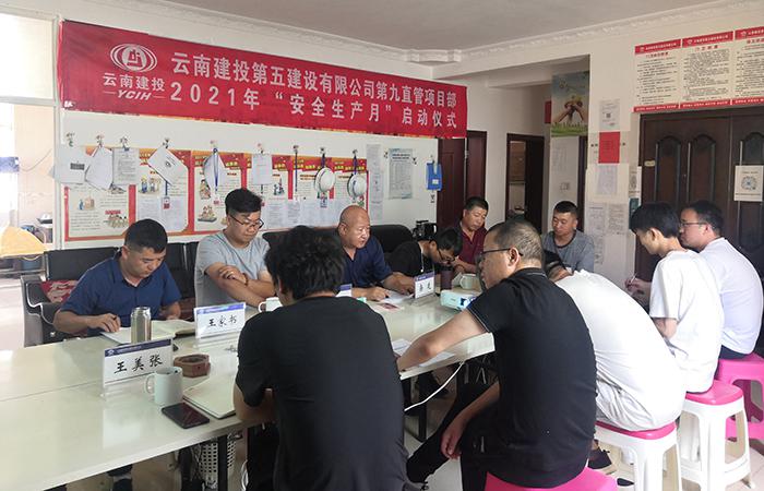 6月18日下午,大理老城區(qū)項目在項目部會議室舉行2021年“安全生產(chǎn)月”啟動儀式,直管部班子成員、甲方代表、監(jiān)理代表、班組代表、項目部管理人員共計13人參加會議。