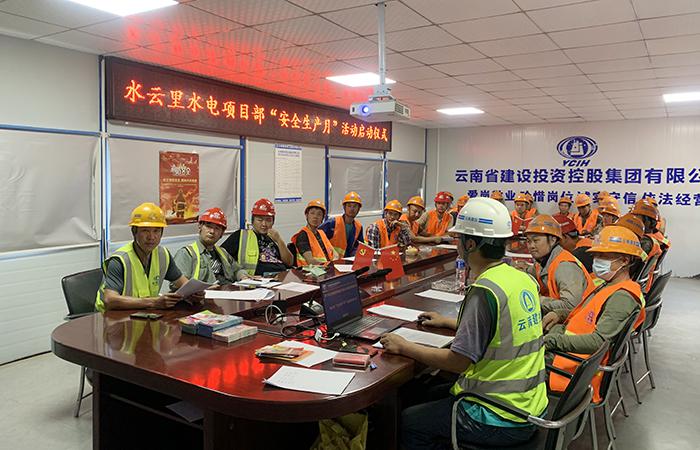 在第20個(gè)全國(guó)“安全生產(chǎn)月”活動(dòng)開(kāi)展之際,6月19日下午13點(diǎn)晉寧水云城水電項(xiàng)目部舉行了安全月啟動(dòng)儀式,參會(huì)人員由項(xiàng)目部管理人員、勞務(wù)班組長(zhǎng)、勞務(wù)班組人員等共26人。