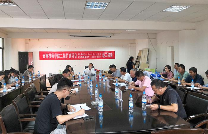 7月30日,由安寧市建設(shè)工程綜合服務(wù)中心、建設(shè)、設(shè)計、勘察、施工、監(jiān)理等單位組成的驗收小組對五〇一直管項目部負責(zé)施工的云南技師學(xué)院二期擴建項目-學(xué)生宿舍K-1、K-10、K-11、K-12及區(qū)域配套室外、總圖工程施工進行竣工初驗收。