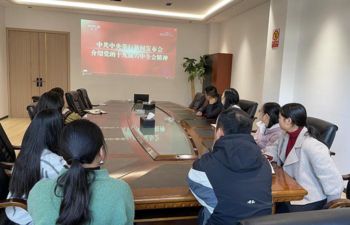 會上,大家觀看了百集微紀錄片——《百年黨史潮青年》,緊接著學習了黨的十九屆六中全會精神。