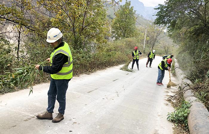 巧家項(xiàng)目的全體管理人員在安排好現(xiàn)場(chǎng)工作后,由黨支部書(shū)記馬勇帶隊(duì),穿上反光背心帶上清掃工具進(jìn)行了道路清理。本次活動(dòng)清掃道路長(zhǎng)度800米,將道路周邊碎石悉數(shù)清理干凈,并將遮擋視線的雜草拔除;這段鄉(xiāng)村小路在大伙的努力下煥然一新,村民安全出行又多了一層保障。