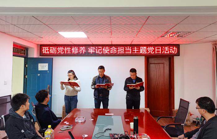 會(huì)上,黨支部書(shū)記領(lǐng)學(xué)了習(xí)近平總書(shū)記在慶祝中國(guó)共產(chǎn)主義青年團(tuán)成立100周年大會(huì)上的重要講話精神。隨后帶領(lǐng)全體黨員面向鮮紅的黨旗,舉起右手、握緊拳頭,莊嚴(yán)宣誓,“我志愿加入中國(guó)共產(chǎn)黨,擁護(hù)黨的綱領(lǐng),遵守黨的章程,履行黨員義務(wù)……”一句句鏗鏘有力的誓詞響徹整個(gè)會(huì)議室,震撼現(xiàn)場(chǎng)每個(gè)人的心靈。通過(guò)重溫入黨誓詞,讓黨員們?cè)邳h旗下審視自我,牢記共產(chǎn)黨員的政治責(zé)任和歷史使命,更加堅(jiān)定了為共產(chǎn)主義奮斗終身的理想信念。