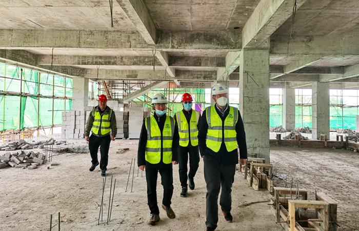 石俊一行實地查看項目施工現(xiàn)場,認真聽取了項目負責(zé)人對項目施工情況的工作匯報,詳細了解項目進展情況以及現(xiàn)場重難點工作,對項目工作進行了指導(dǎo)。