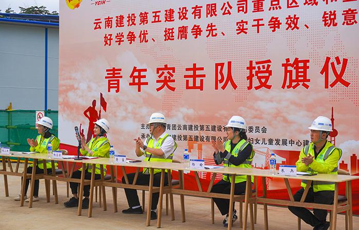 上午十點(diǎn),青年突擊隊授旗儀式正式開始,公司團(tuán)委負(fù)責(zé)人宣讀活動方案,云南婦女兒童發(fā)展中心青年突擊隊和筑夢青年突擊隊代表依次上臺作表態(tài)發(fā)言,出席儀式的領(lǐng)導(dǎo)向16支隊伍授予“青年突擊隊”旗幟,隊員們揮舞起自己的隊旗,激情的口號聲響徹工地。