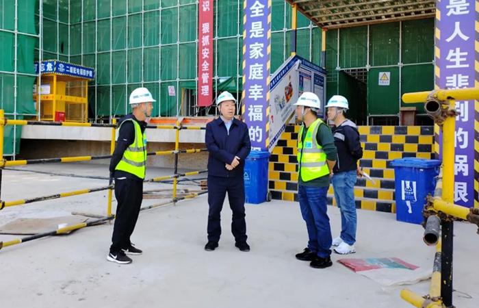 在項(xiàng)目施工現(xiàn)場(chǎng),陳祖軍與一線管理人員深入交流,詳細(xì)了解項(xiàng)目規(guī)劃、建設(shè)進(jìn)度、成本管控、人員配置、黨的建設(shè)等情況,實(shí)地調(diào)研了項(xiàng)目安全生產(chǎn)、質(zhì)量管控、文明施工等工作開展情況,對(duì)兩個(gè)項(xiàng)目的各項(xiàng)工作進(jìn)展予以充分肯定,并就下一步工作進(jìn)行安排部署。