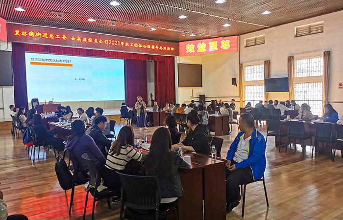 活動(dòng)邀請(qǐng)到云南開放大學(xué)心理健康教育課程思政教學(xué)名師張倩老師,采用PPT從“心理常態(tài)與偏態(tài)”“心理問(wèn)題與心理疾病”“心理咨詢”等方面結(jié)合案例分析的方式,圖文并茂、深入淺出的為職工講述了心理健康知識(shí)與調(diào)試方法。在心理賦能老師的帶動(dòng)下,才加活動(dòng)的職工依次開展了“繪制生命線”“繩索游戲——探索人際關(guān)系”“生涯彩虹圖——找到人生的位置”以及“案例分析”等體驗(yàn)式活動(dòng),職工們逐漸敞開心扉、積極分享,在有趣的互動(dòng)游戲中放松身心、充分體驗(yàn)和交流,現(xiàn)場(chǎng)歡笑聲不斷。