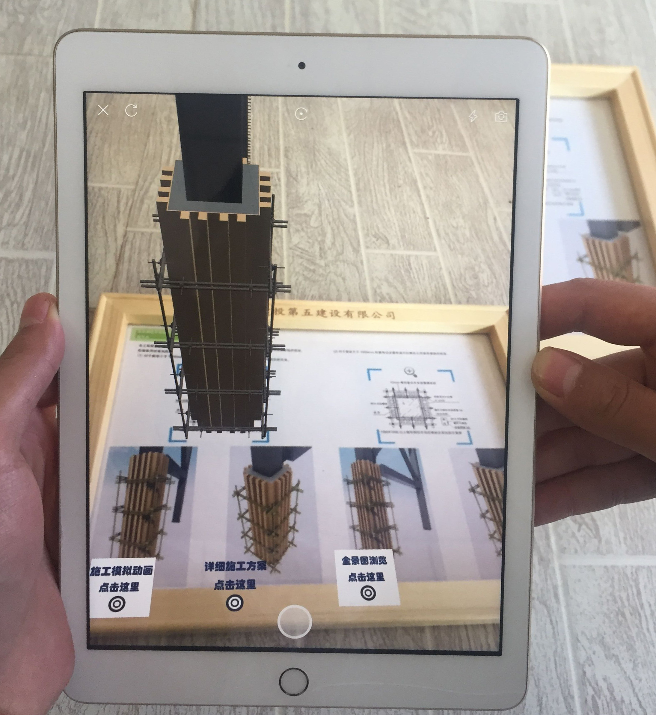 來到車行天下汽車城(二期)項目的AR技術(shù)展示區(qū),可以看到一個個畫框擺在旋轉(zhuǎn)臺上,當記者用平板電腦的軟件對準其中一張圖片,一組立體的鋼構(gòu)件就從平板電腦的屏幕上跳躍出來。隨著旋轉(zhuǎn)臺的轉(zhuǎn)動可以從不同角度查看鋼結(jié)構(gòu)構(gòu)件的各個細節(jié),讓人興趣盎然。