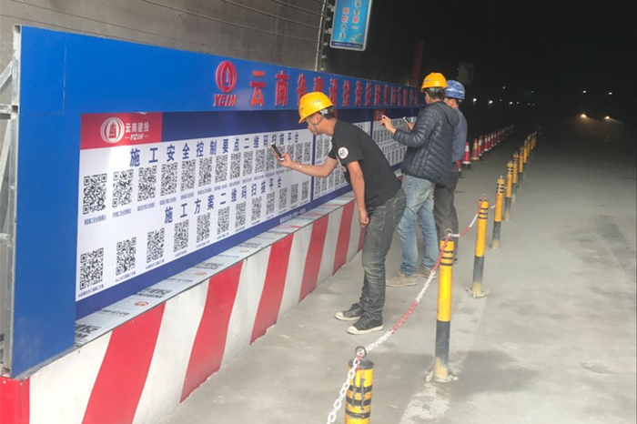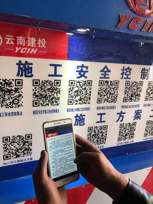 二維碼掃描平臺(tái)位于古那灣2號(hào)隧道進(jìn)口端洞外的休息區(qū)及洞口人車分流區(qū)的人行道上,涵蓋施工安全控制要點(diǎn)、施工方案、作業(yè)指導(dǎo)書、安全技術(shù)交底、安全操作規(guī)程等施工工藝、規(guī)范和安全、技術(shù)、質(zhì)量管理內(nèi)容。進(jìn)入施工現(xiàn)場前如需查詢相關(guān)資料,可直接通過手機(jī)掃描二維碼進(jìn)行查詢,操作非常方便。就算施工員不小心忘記了施工技術(shù)交底中的某個(gè)數(shù)據(jù),只要輕松掃一掃就能全部“收入囊中”,巧當(dāng)施工現(xiàn)場的“教科書”。