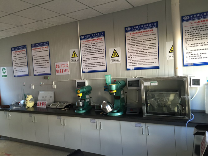 香麗高速第十一項(xiàng)目部試驗(yàn)室自2015年11月1日開始籌建,12月4日完成所有試驗(yàn)檢測儀器設(shè)備的進(jìn)場、安裝與調(diào)試及標(biāo)定。試驗(yàn)室建筑面積450平方米,12個(gè)功能室擁有各種試驗(yàn)儀器104臺(套),人員配置11人,其中試驗(yàn)工程師2人,試驗(yàn)檢測員9人,滿足試驗(yàn)檢測環(huán)境及辦公要求。