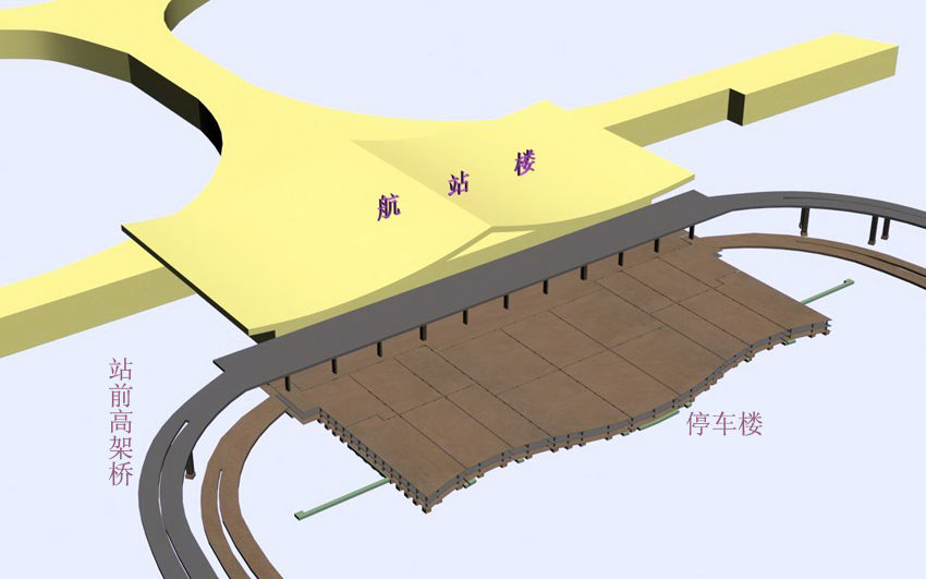 機(jī)場(chǎng)航站樓前停車(chē)樓及站前高架橋示意圖