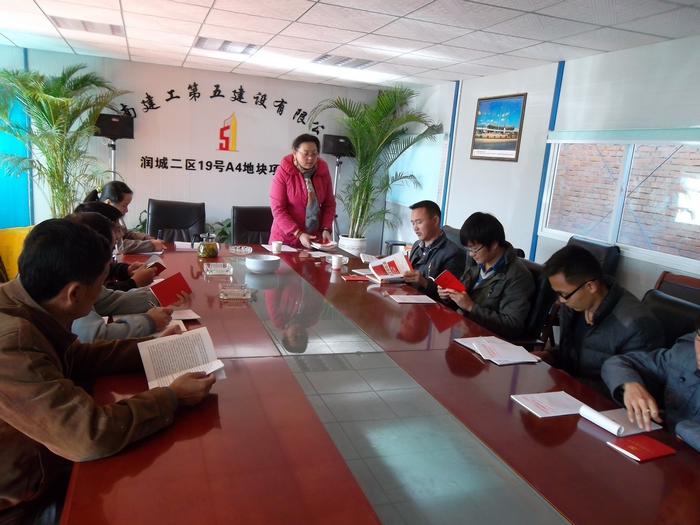 2012年12月13日,第五直管部黨支部組織潤城項目部學習了新黨章,在會上為黨員們發(fā)放新黨徽,并要求今后黨員必須佩戴黨徽上班。