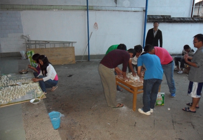 11月26日傍晚,第二直管部龍陵保障房項目部的管理人員在澆筑了一天的混凝土回到宿舍后不但沒有休息,反而為準備晚餐忙活了起來,以“團結(jié)合作為契機,構(gòu)筑溫馨項目部”為主題的包餃子活動展開了。