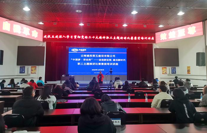 12月6日下午,公司工會(huì)以《“中國(guó)夢(mèng)·勞動(dòng)美”——奮進(jìn)新征程?建功新時(shí)代》為主題的深入學(xué)習(xí)貫徹黨的二十大精神職工主題演講比賽賽前培訓(xùn)講座在公司禮堂順利開展。各基層單位參加演講比賽的選手、工會(huì)主席、工會(huì)干事以及熱愛演講的職工同志等60余名干部職工參加線下培訓(xùn),培訓(xùn)同時(shí)通過“云南建投第五建設(shè)有限公司”釘釘群進(jìn)行實(shí)時(shí)直播,200余名干部職工同步參加此次線上培訓(xùn)。本次培訓(xùn)特別邀請(qǐng)到云南演講學(xué)會(huì)副會(huì)長(zhǎng)徐俊波…