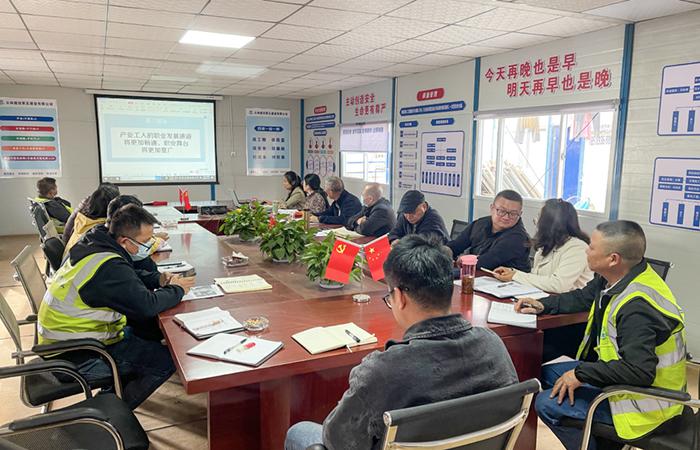 11月23日下午,昌達(dá)公司在云南革命軍事館建設(shè)項目會議室開展十一月份產(chǎn)業(yè)工人培訓(xùn),項目管理人員、農(nóng)民工代表共計22人參加。此次培訓(xùn)主要圍繞《產(chǎn)業(yè)工人隊伍建設(shè)改革職工知識50問》第三部分的產(chǎn)業(yè)工人的職業(yè)發(fā)展通道將更加申通、職業(yè)舞臺將更加寬廣,第四部分的產(chǎn)業(yè)工人技能素質(zhì)提升有渠道、有資源進(jìn)行宣貫。會議強(qiáng)調(diào),產(chǎn)業(yè)工人隊伍建設(shè)改革是黨和國家一項具有戰(zhàn)略性、全局性的重大決策部署,我們要提高政治站位,學(xué)習(xí)好、…