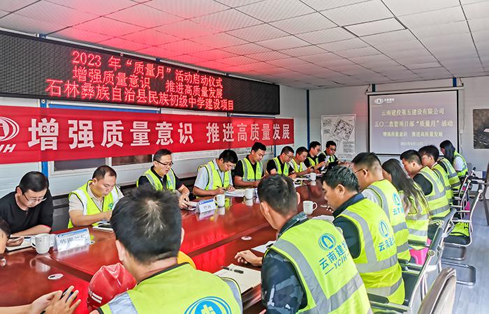 9月13日上午,五〇二直管項(xiàng)目部在石林彝族自治縣民族初級中學(xué)建設(shè)項(xiàng)目組織召開了以“增強(qiáng)質(zhì)量意識 推進(jìn)高質(zhì)量發(fā)展”為主題的2023年“質(zhì)量月”活動啟動會,直管部班子成員及各科室負(fù)責(zé)人、建設(shè)單位代表、監(jiān)理單位代表出席此次啟動大會。會議要求,一是要充分認(rèn)識“質(zhì)量月”活動的重要意義,充分運(yùn)用責(zé)任體系建立、質(zhì)量風(fēng)險分析等質(zhì)量管理手段,全面構(gòu)建質(zhì)量管理體系和高效運(yùn)行機(jī)制,切實(shí)提高在建項(xiàng)目人員質(zhì)量管理素質(zhì),提升…