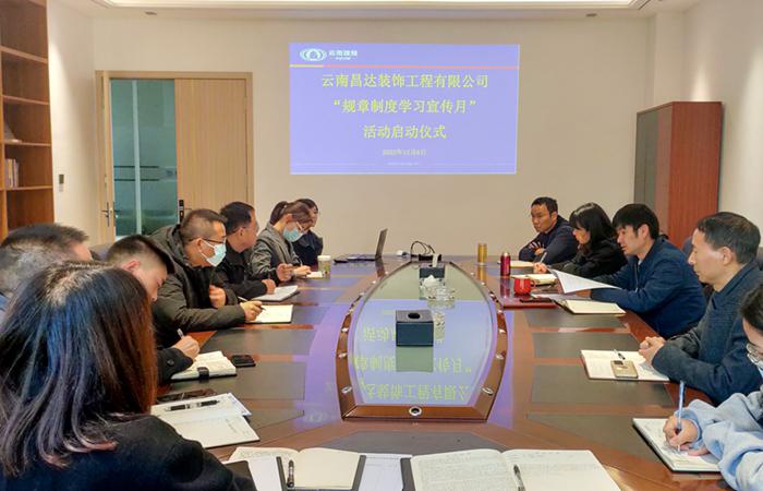 12月6日上午,云南昌達裝飾工程有限公司黨支部書記主持召開規(guī)章制度學(xué)習(xí)宣傳月啟動儀式,昌達公司領(lǐng)導(dǎo)班子成員、部門負責(zé)人、項目經(jīng)理15人參加。“規(guī)章制度學(xué)習(xí)宣傳月”活動,以今年公司下發(fā)更新的各項規(guī)章制度為主要學(xué)習(xí)內(nèi)容。昌達公司領(lǐng)導(dǎo)班子和各部門按照經(jīng)濟管控、物資設(shè)備管理、施工管理、人力資源管理、資金管理、綜合業(yè)務(wù)管理等方面牽頭組織全體職工在12月內(nèi)分板塊開展集中學(xué)習(xí)。通過抓宣傳、抓培訓(xùn)、抓交流、抓整治…
